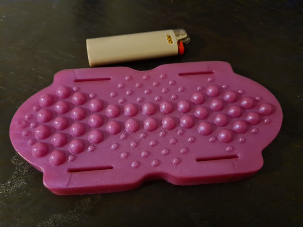 Der Spiked Grinder verfügt über ein Bett aus großzügigen, weichen, schwammigen Spikes, die mit Sicherheit Wellen der Freude durch Ihre Sinne strömen lassen. Jeder Dorn ist strategisch platziert, um jedes Nervenende zu wecken und eine Symphonie von Empfindungen zu erzeugen, die Sie vor Freude zum Singen bringen wird.