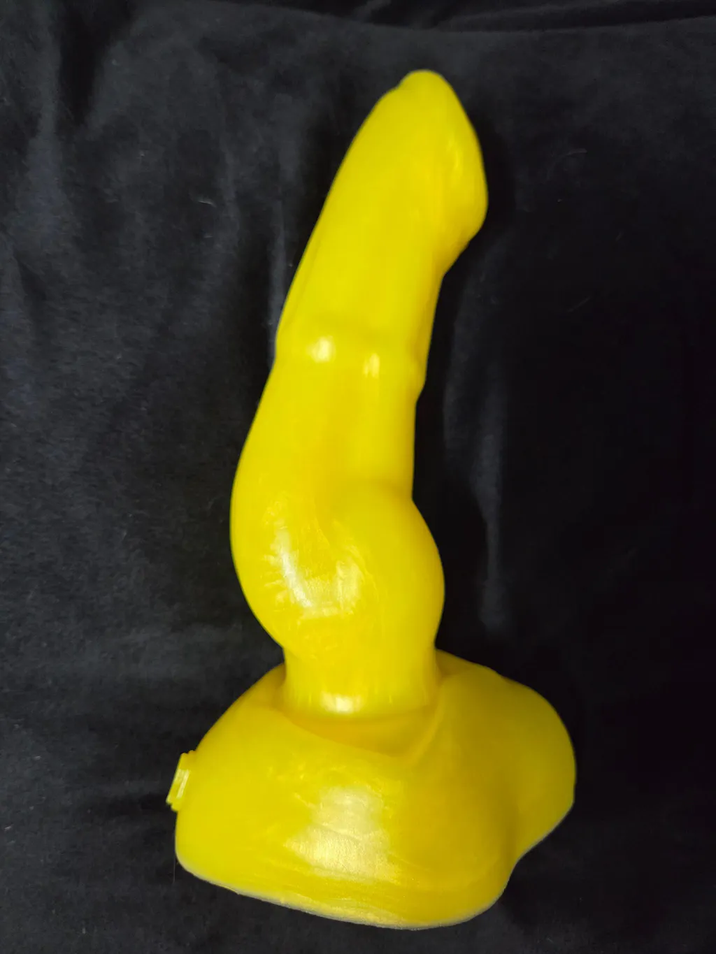Its actually pretty soft and came in this beautiful bright yellow shimmer. I love the tapered head, its my favorite part. Its very girthy and its curve is just perfect.