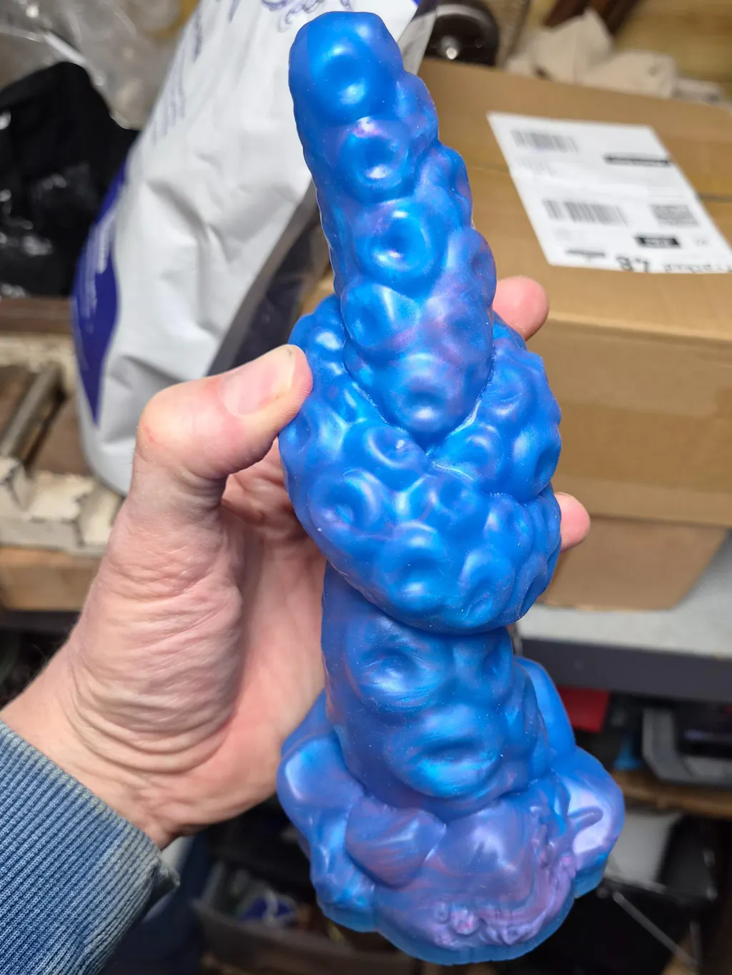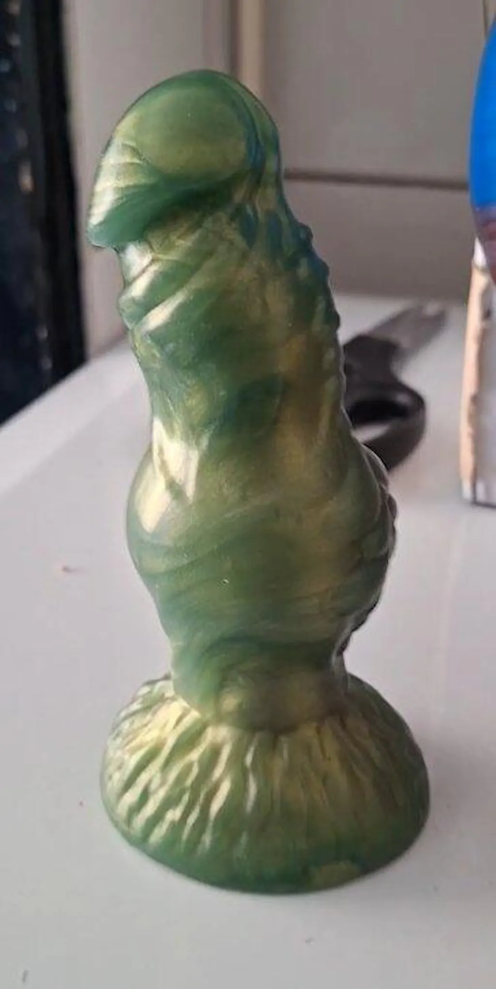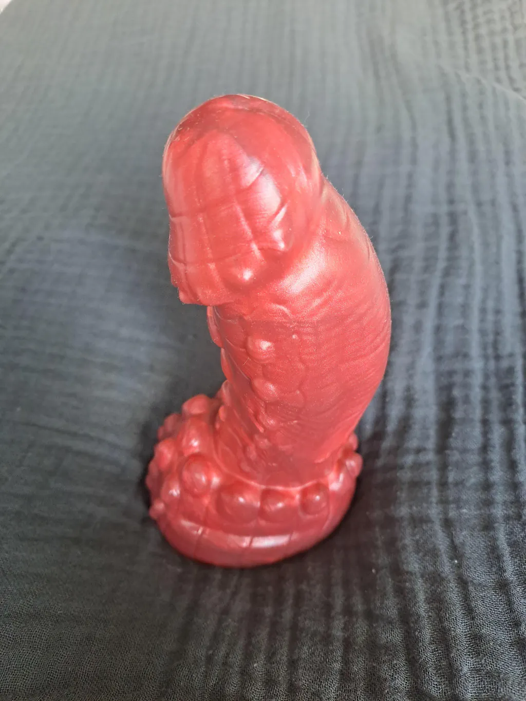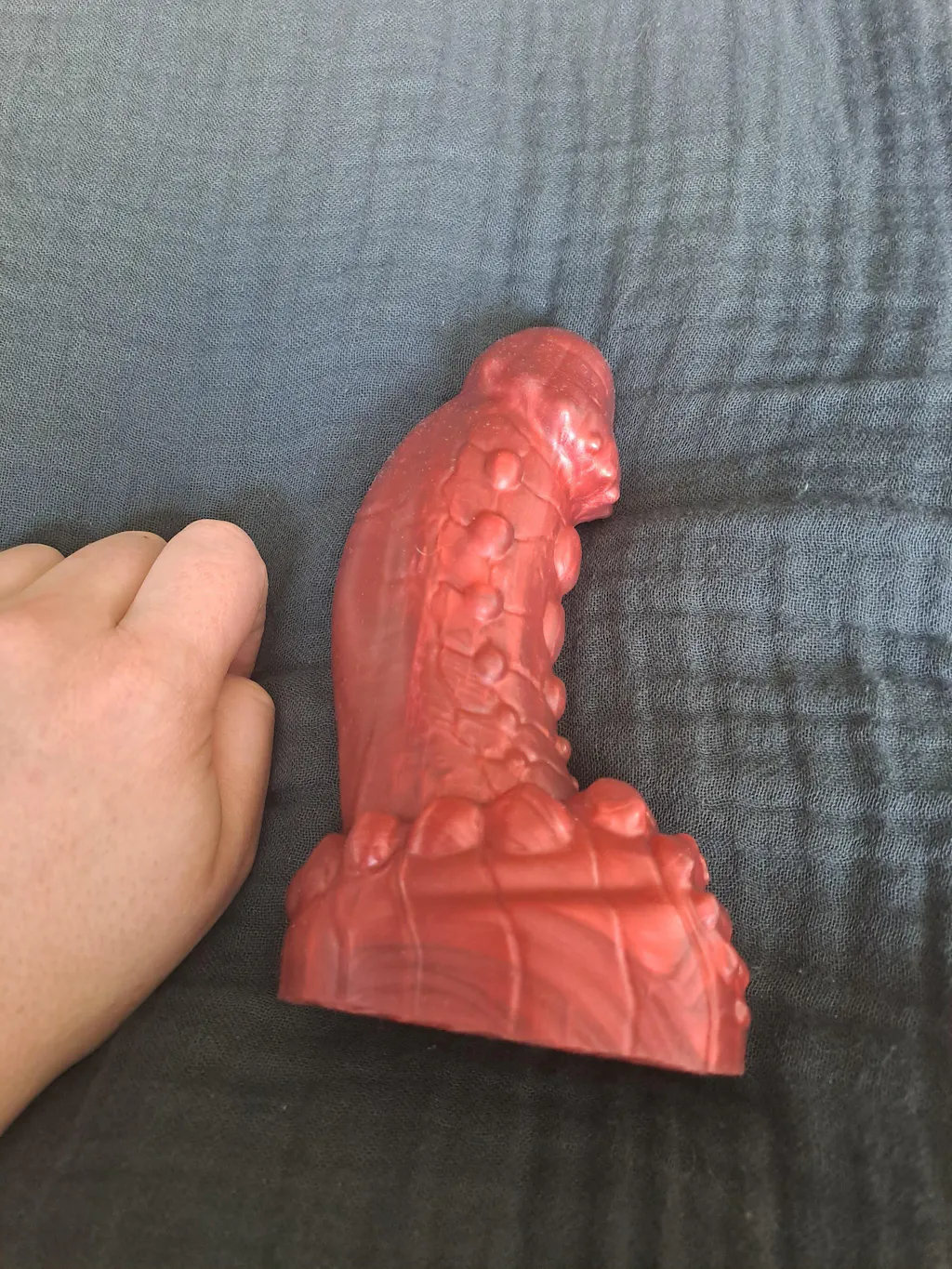 I ordered this lil' guy along with my first order for a mystery dildo (medium-size), and got this mystery one in x-tra small. All in all, I was happier with this free additon than the original order! It's a bit small for me to enjoy, but the shape is great- my partner also really enjoyed the knot- and I'm actually thinking on ordering a bigger size for myself with this same shape- The Werewolf. I also loved the colouring on it! It didn't suction but was a lot more stable, not too floppy, and had a nice feel to it.