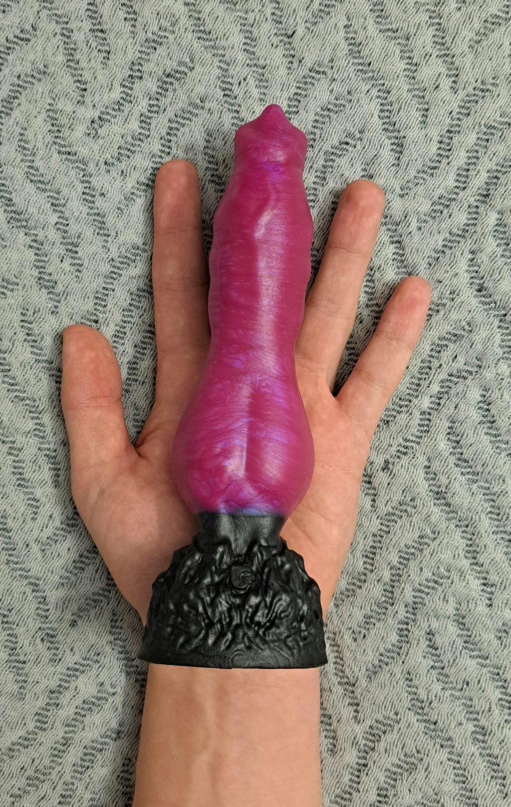 Introducing the slimmer and sleeker Knot II, a dream for newbies and a delight for every fan of fantasy knot thrills. Glide effortlessly over its gently curving, subtly ridged shaft until you pounce on the main event - The Knot. It's there to stretch, tease, and fetch you an uproarious howl of delight, whether you're sniffing around backdoor trails or front porch adventures. Anchored on a detailed, fur inspired base, The Knot II promises an enchanting experience for all fantasy knot enthusiasts. Ready to let this captivating adventure put you on a leash?