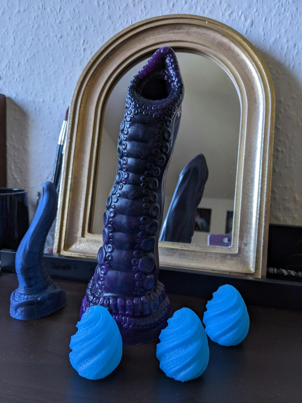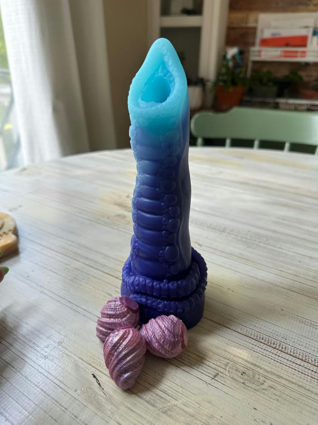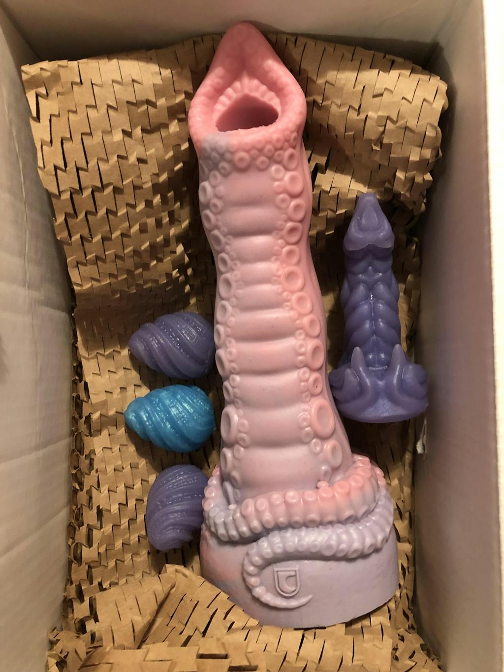 Our Tentacle Ovipositor has an opening hole at the top and bottom to allow its eggs to be deposited inside of you. With columns of soft suckers, and gently ribbed detail leading to a mouth-like opening, it will search and find your inner depths. Then, as the eggs move through this beast, you’ll feel each and every pulse until you’re left satisfied and full.