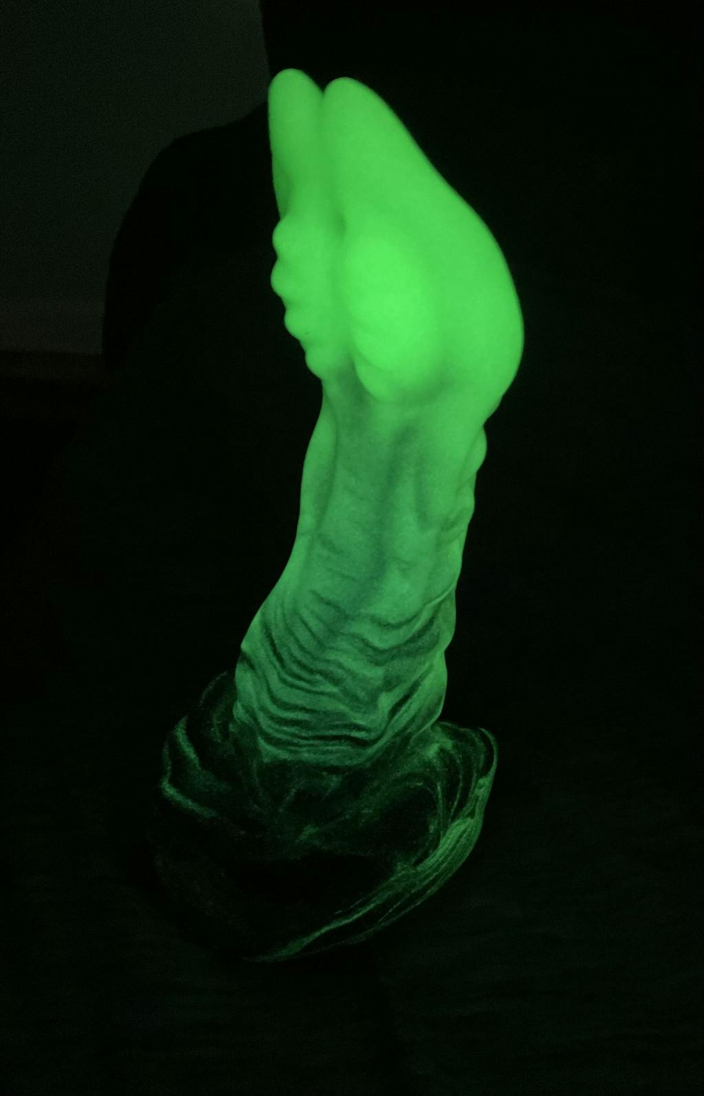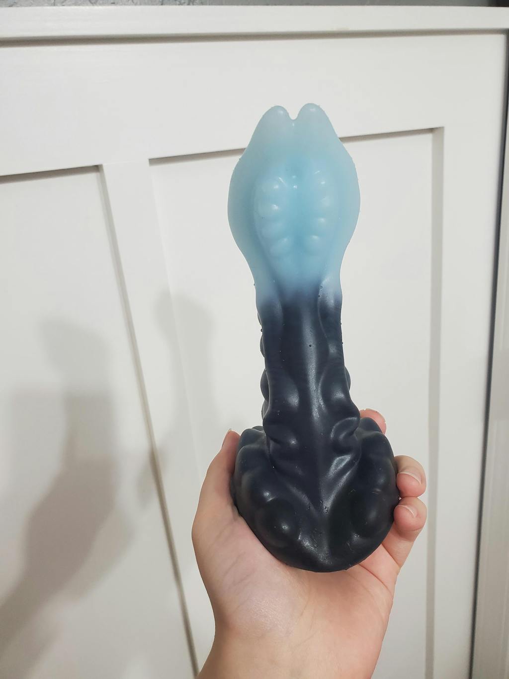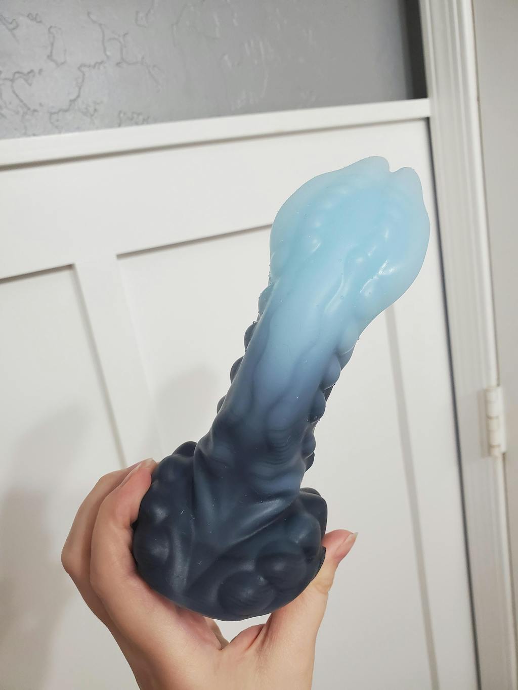 The Void features a wide yet thin tip that will give you a satisfying stretch without the intensity of some of our thicker knot dildos. Gently curved and adorned with beautiful bumps, the tip has been crafted to find and stimulate the g and p-spot, whilst the bumps and wavy textures down the shaft will continue to add to the experience. Finished off with a thick and sturdy base, this maw dildo will stand up proud and won’t disappoint you by falling over during play.